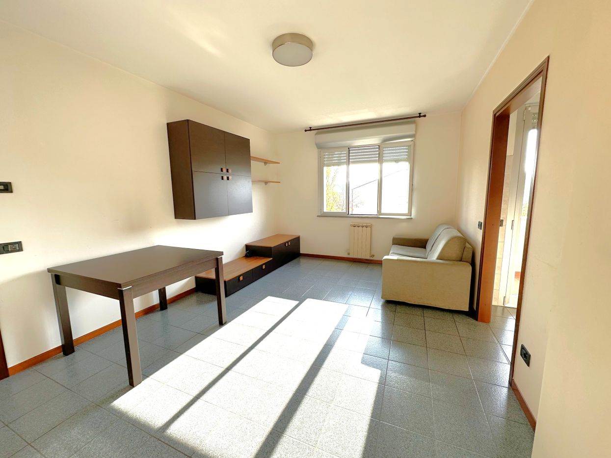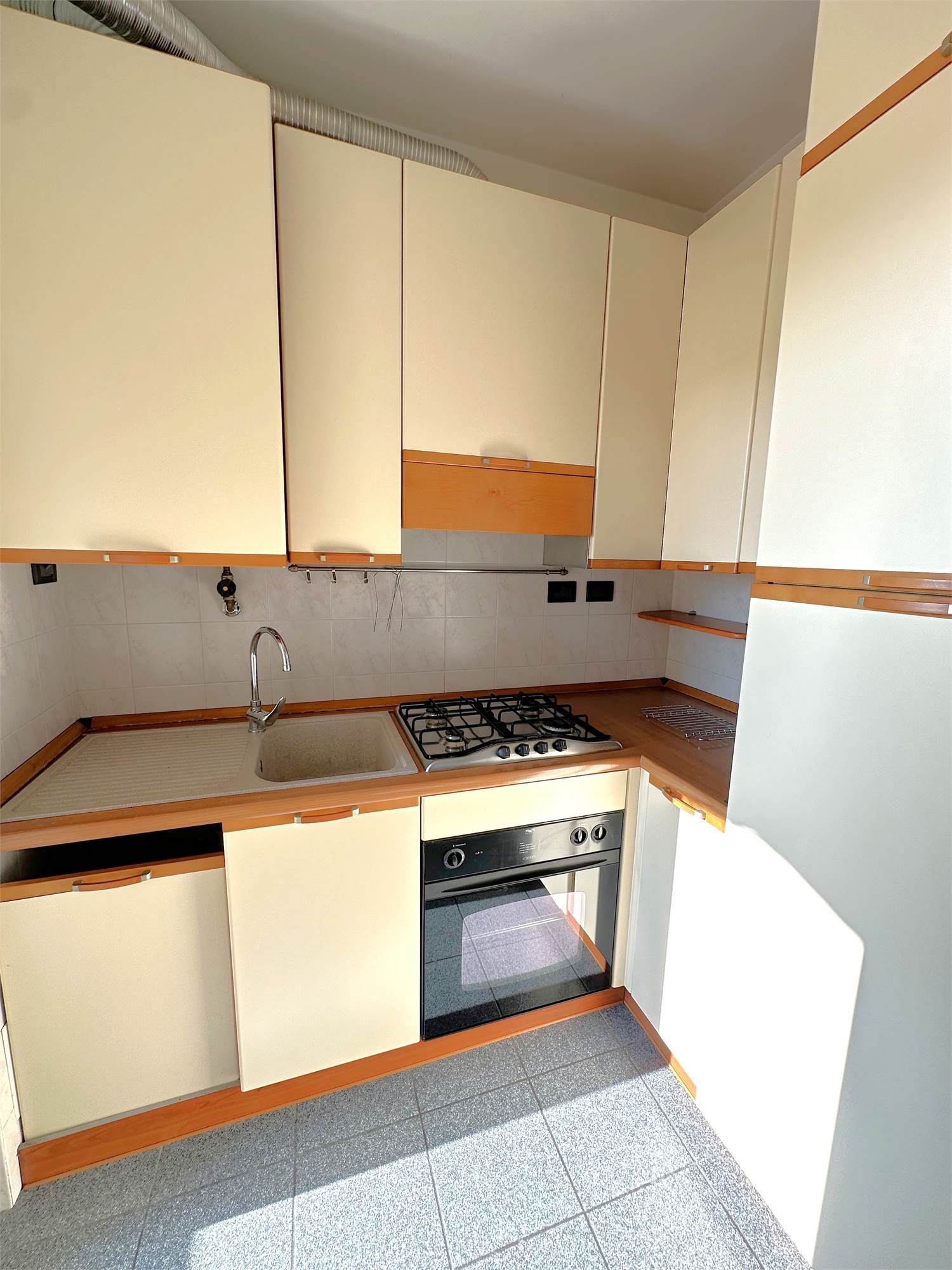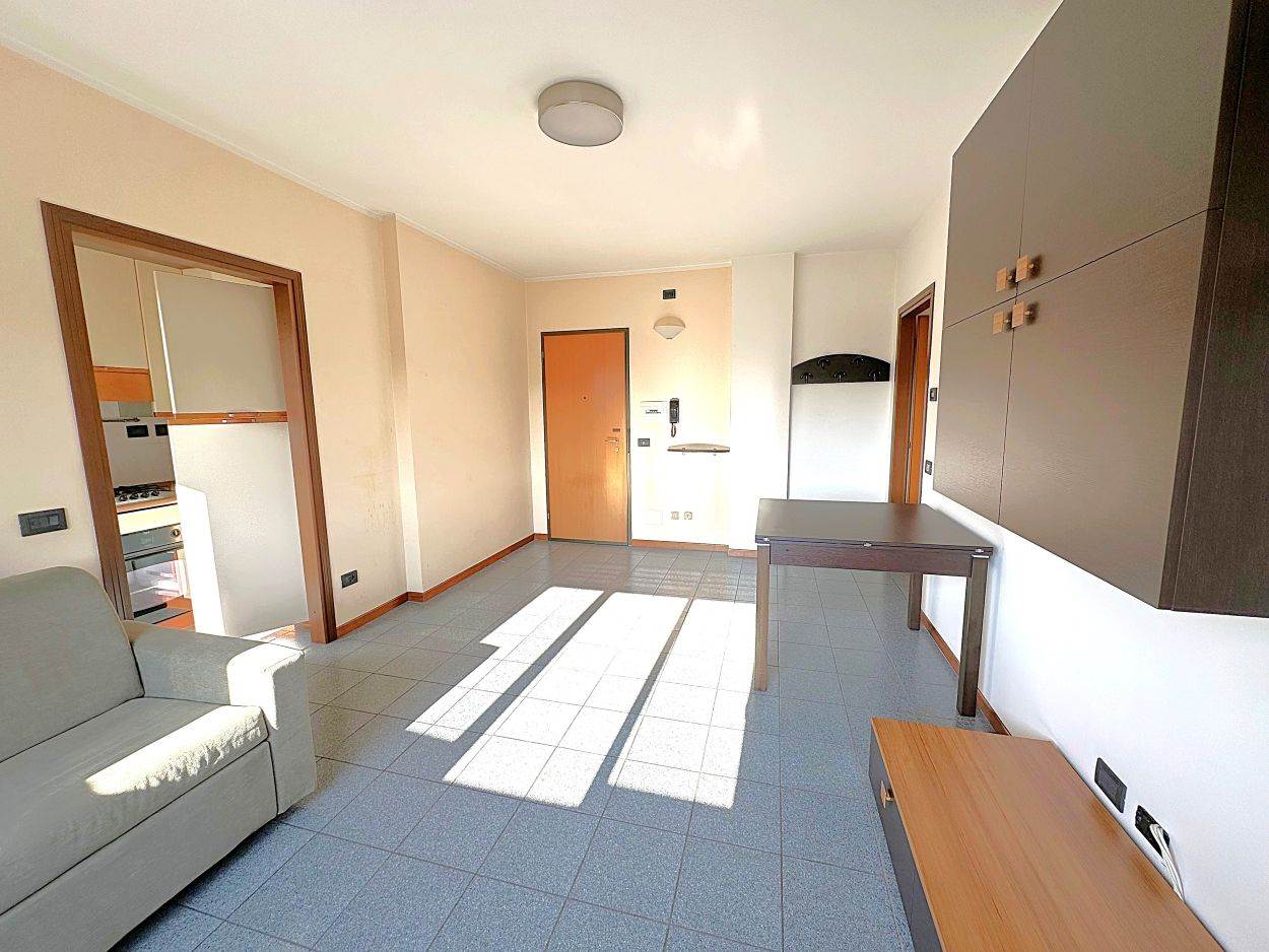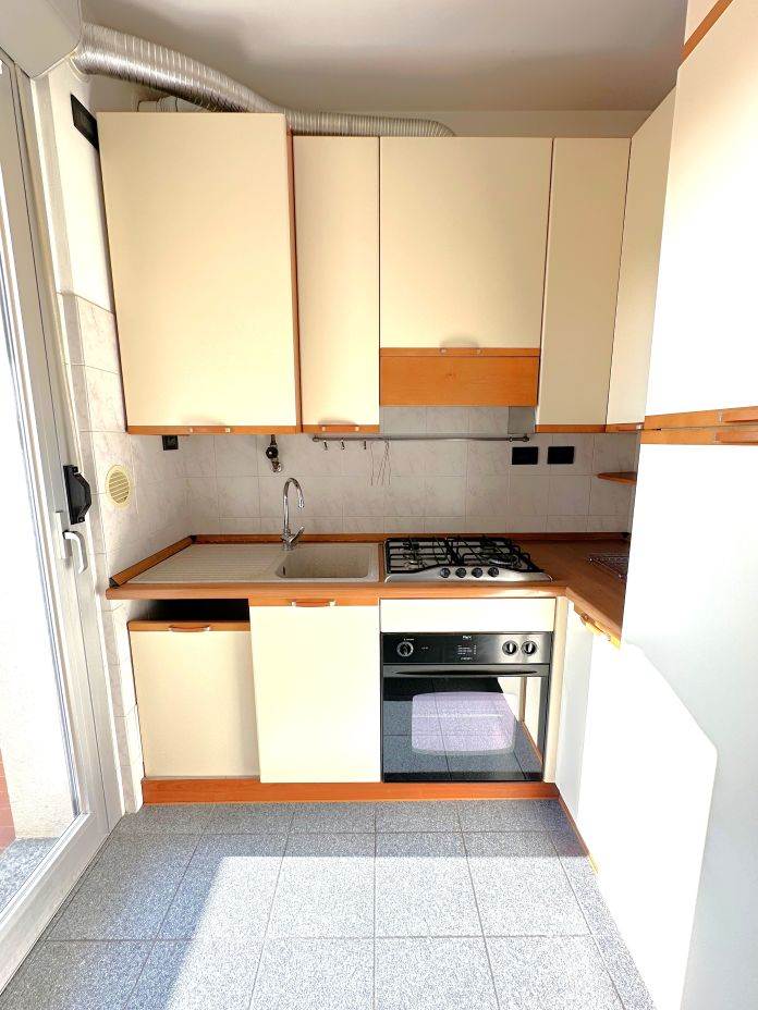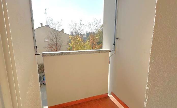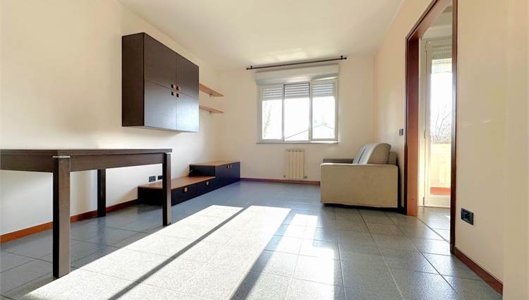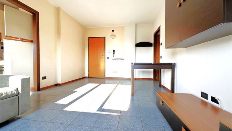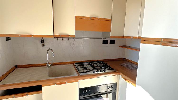 L' appartmento è composto da ingresso su soggiorno, cucinotto separato, disimpegno notte armadiabile, camera da letto matrimoniale, bagno finestrato e balcone coperto.