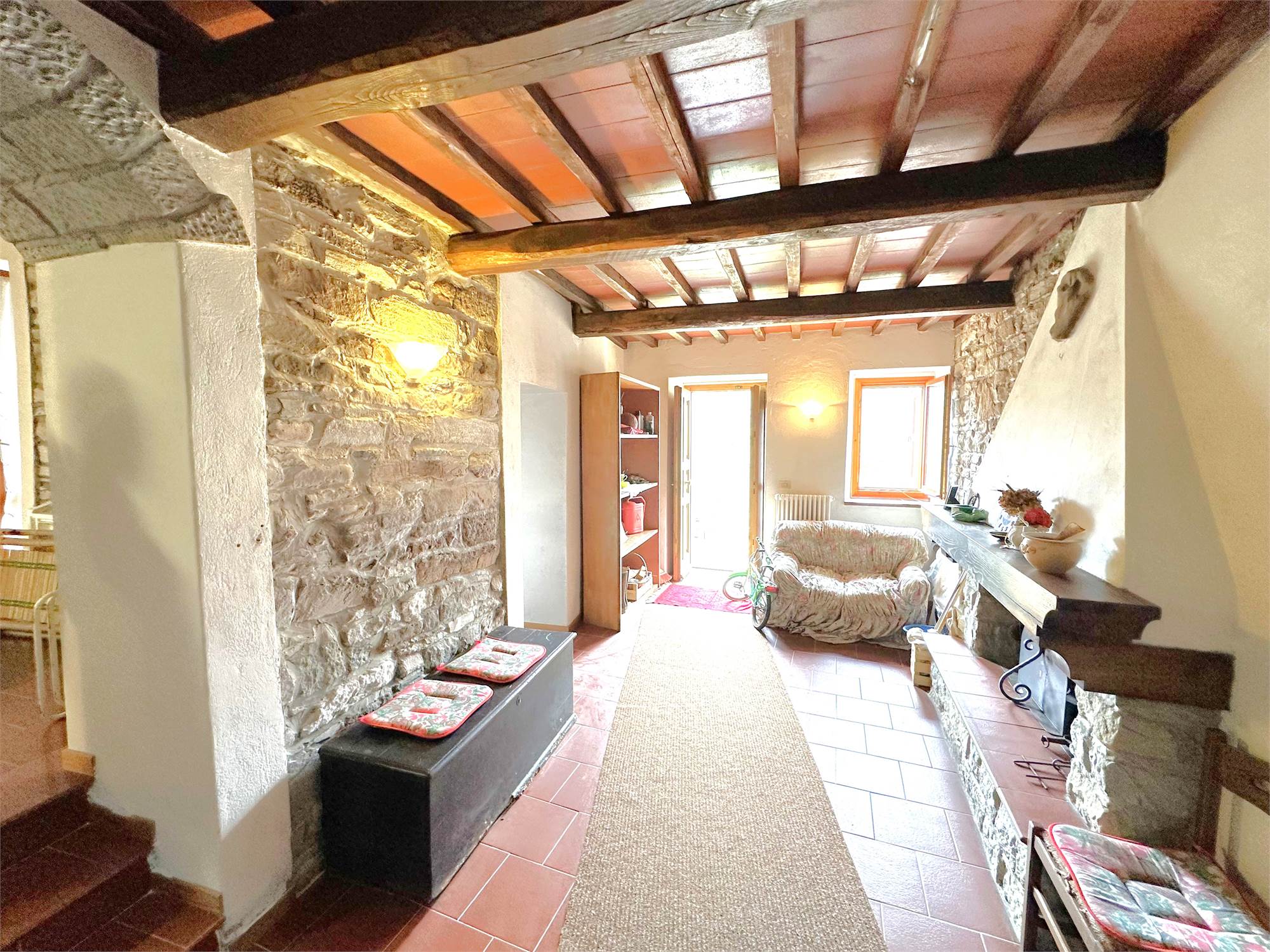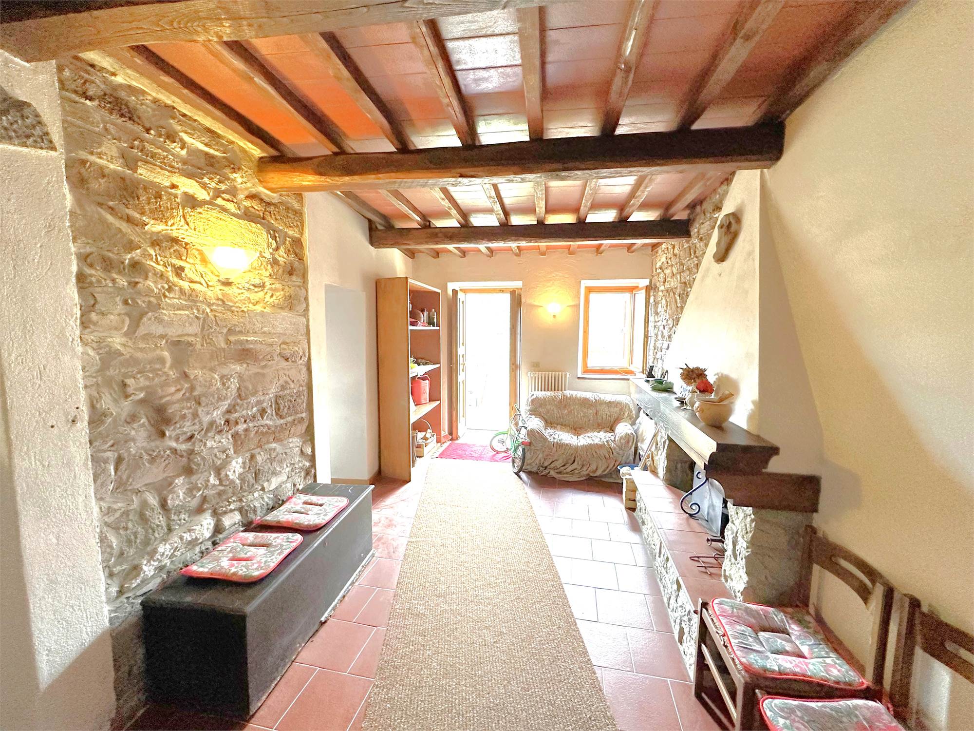Vendesi casa indipendente in sasso ristrutturata completamente nel 1993 e così composta: