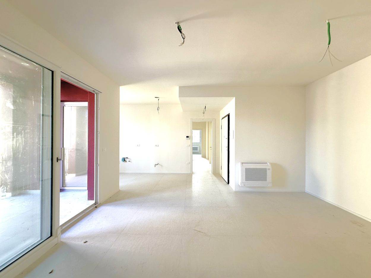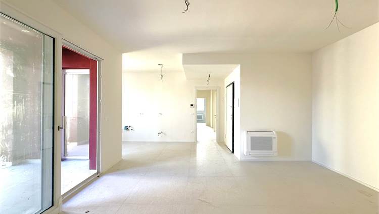 L'immobile è composto da soggiorno con cucina openspace, ampia loggia, tre camere da letto (matrimoniale e due singole) e due bagni finestrati con doccia. Possibilità di abbinare cantina e/o autorimessa.