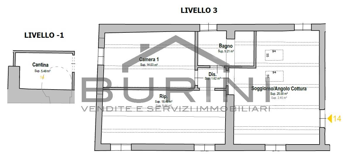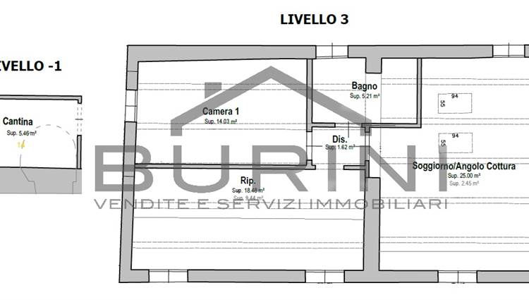 Composto da ingresso su zona giorno openspace, bagno finestrato, disimpegno, camera da letto matrimoniale, ripostiglio/camera singola oltre a cantina di proprietà al piano interrato.